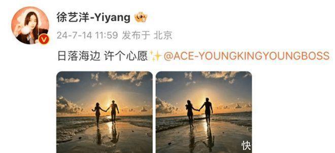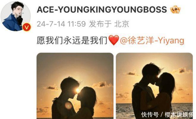 7月14日11:59,黄子韬、徐艺洋很有默契地同时宣布恋情。徐艺洋发了两人在海边牵手的背影照,并发文写道:日落海边,许个心愿。黄子韬晒出的两人的拥吻照:并配文:愿我们永远是我们。网友:海浪再高也挡不住两人的爱情火花。